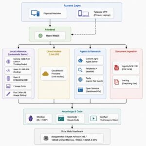 Software: Almost entirely free and open source (Lemonade, Open WebUI, LiteLLM, Perplexica, SearXNG, ComfyUI, Agno, Docling, Obsidian for personal use, Tailscale for personal use free tier).